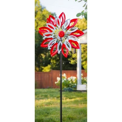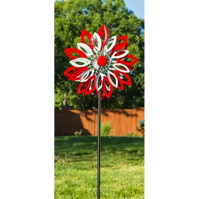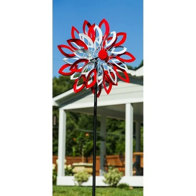 With its red and white leaves, this 75 inch patriotic wind spinner kinetic is brought into motion whenever the wind blows. Made of outdoor-safe metal with a powder-coated finish, the quality craftmanship ensures weather and fade-resistancy.