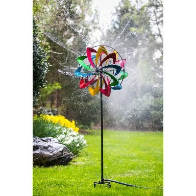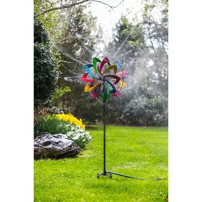 This 75″H kinetic wind spinner can be connected to a standard garden hose to become a sprinkler. Assembly required. It has a multicolor flower design. Colors include: red, green, blue, pink and yellow. At Evergreen, we are committed to producing premium, quality products to bring a touch of color and personality to your home. We respect and celebrate the uniqueness in everyone by offering one of the world’s largest selections of home and garden decor.