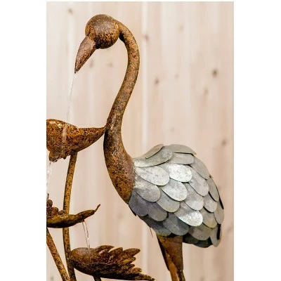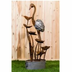 - METAL FLAMINGO WITH LEAVES WATERFALL FOUNTAIN: Add charm and elegance to your home or garden with this copper flamingo waterfall fountain with leaves in pail, and create a peaceful and tranquil ambiance