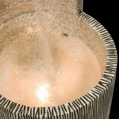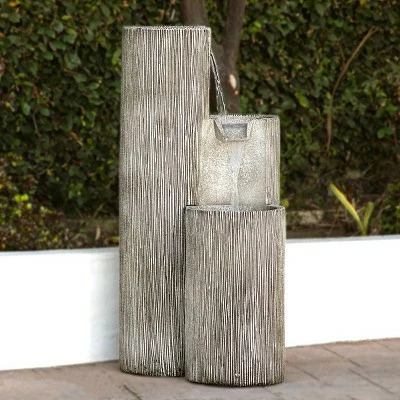 Bring calming ambiance to your space with the Alpine Corporation Column Fountain. Set the mood for meditation or romance with this remarkable three-tier fountain. As water cascades from one column to the next, it makes soft sounds for ultimate relaxation. Each polyresin column has a rough texture that imitates natural, weathered stone. To use, simply plug into an outlet, fill lower basin with water, and watch as the interior pump with 6 ft. cord length, creates a lovely water flow. With a 1-year warranty, you can be confident in the quality of your purchase. Fountain measures 22″L x 19″W x 41″H for a perfect fit in your garden, patio, and more.