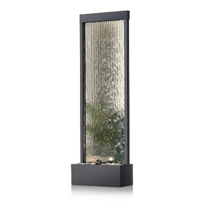 Bring the beauty of nature into your home with the Alpine Corporation Silver Mirror Waterfall Fountain. Modern interpretations of natureβs wonders give your home a clean, contemporary look while creating a relaxing ambiance. The combination of on-trend design mixed with natural stone elements gives a sleek look to your indoor or outdoor decor. Watch as water falls from the top of the mirror to the bottom basin, bringing the beauty of the outdoors to your space. Included river rocks can be arranged in the top of the basin, enhancing the rustic character of the fountain. With an included halogen light, you can illuminate the trickling water for a subtle yet beautiful light source. The slim design allows you to place it against a wall for a statement piece that doesn’t get in the way. To use, simply plug into an outlet, fill lower basin with water, and watch as the interior pump creates a lovely vertical water flow. With a 1-year warranty, you can be confident in the quality of your purchase. Fountain measures 24″L x 10″W x 72″H for a perfect fit in your office, bedroom, living room, hall, kitchen, and more.