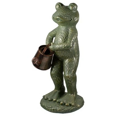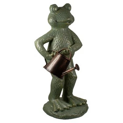 Your garden will certainly enjoy an update with the addition of a frog statue! He is ready to help with the gardening chores as he is carrying a watering can. This frog statue is sure to make you smile whether you place it in your doorway, hallway, or garden! This guy looks great at your home or given as a gift!Features: Standing frog outdoor statueHolding a brown watering can Frog is gold verdigris tonedHe stands on a round baseFor indoor or outdoor useMade of durable polystone for years of enjoymentDimensions: 17″H x 7″W x 7 “DMaterial(s): polystone/resin mix