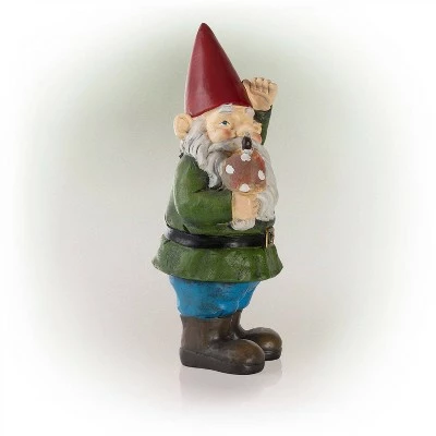 Legend has it that garden gnomes will provide you with mythical powers to keep your garden lush and green, while keeping you safe from evil spirits. With the 12″ Tall Outdoor Garden Gnome with Mushroom Yard Statue Decoration from Alpine Corporation, you can add fun and whimsy to your outdoor area. The lawn figurine features a brightly colored, playful, and magical yard gnome holding a mushroom. Use the yard gnome to offer a warm welcome to your home, front yard, garden, or patio. Constructed from durable polyresin with a colorful painted finish, the yard decoration is weatherproof and rust-resistant for years of quality use on your lawn or outdoor living area. The outdoor statue features intricate, life-like details on the sculpture, making it ideal for placing in front of a pond or fountain to reflect their inviting and whimsical spirit. Add multiple statues to create an enchanted garden display and gnome community. Alpineβs gnomes are perfect for display on your deck, porch, or outdoor tabletop as a centerpiece. They can also be used as a decorative accent in your flowerbeds or in your home’s interior decor. This compact outdoor statue measures 5″L x 5″W x 12″H to fit almost any indoor or outdoor space, and includes a one year manufacturer’s warranty from date of purchase. Alpine Corporation is one of America’s leading designers, importers, and distributors of superior quality home and garden dΓ©cor products. Alpine’s award winning in-house design team continuously develops new and innovative “statements pieces” for your home and garden. Your outdoor living spaces will be the envy of the neighborhood with our wide assortment of fresh, fashionable and contemporary products, from beautifully crafted solar garden stakes featuring patented motion and fiber optic lighting technology to gorgeous glass and glow-in-the-dark bird baths and feeders.