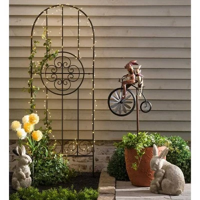The Medallion Metal Garden Trellis has traditional scrollwork that resembles those found in classical architecture. With a powder-coated gunmetal finish, the trellis makes a stylish and functional statement, and is outdoor safe and weather-resistant.