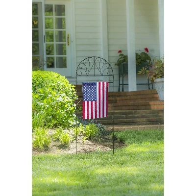 - Measures 18″W x 52″H x 0.5″D. Elevate your flag display with this garden flag arbor stand.