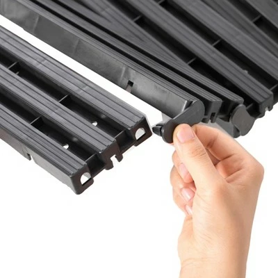 Create a smooth walkway area with this floor paver. Composed out of durable plastic material that offers a solid platform to create a designs and give your space your style. Ideal for patio, deck, walkway, garden, or any other outdoor areas. Permeable slots help prevent flooding, puddles, mud, and snow for a mess free and smooth pathway and patio space. These weather resistant pavers have an open design for airflow and water drainage. Easy to set up and remove with the interlocking design that securely attaches each tile to the other. These pavers make pathways look more clean and walking more practical.