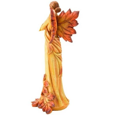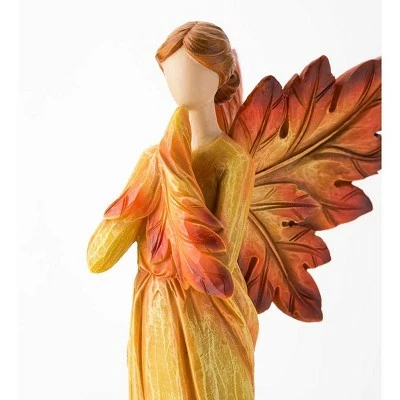 Welcome cooler days by displaying this delightful Fall Angel. Everything from her leaf-like wings to her flowing gown displays the fiery red and yellow hues of autumn. Cast in durable, lightweight resin from a highly detailed original sculpture, this lovely lass takes a moment to be thankful in the season of harvest. For indoor display only.