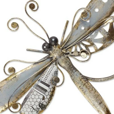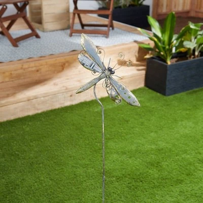- Charming dragonfly garden stake is made of iron and measures 10.75×1.75×39.25 inches.