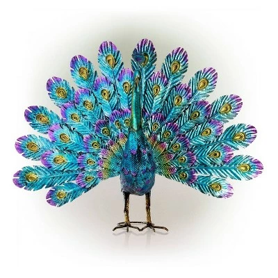Dazzle your outdoor display with colorful and decorative animals. This decor features a vibrant metallic peacock with blue and green color accents. It stands on its own and is made durable and weather-resistant. It stands out as a unique accent piece to your garden landscape and helps create a stunning display.