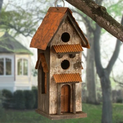 Have your outdoor decor look as good as home with this Birdhouse Brown 13″ from National Tree Company. Featuring a metal window ridge and ribbed awnings with two access doors located on back wall of house. Use this birdhouse as a rustic indoor decoration or hang it outside to accommodate visiting birds.