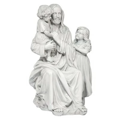 Celebrate children with contemporary sculptor Bronti’s timeless image of Jesus smiling and welcoming the little ones. Knowing that Jesus taught that the kingdom of heaven belongs to such as these. Also known as “The Smiling Christ Statue,” Bronti created his over two-foot-high sculpt to honor one of the most joyful aspects of Christ s ministry. Sculpted to be admired from any angle, our Toscano exclusive religious statue is cast in quality designer resin with an antique stone finish for display in home or garden gallery.