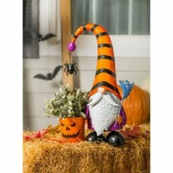 - This charming gnome is dressed as a warlock and features plenty of fun Halloween accents including a dangling spider, ghost, and jack-o-lantern planter.
