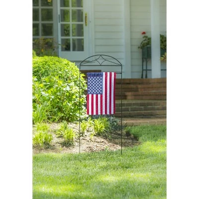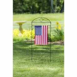 - Measures 18″W x 52″H x 0.5″D. Elevate your flag display with this garden flag arbor stand.