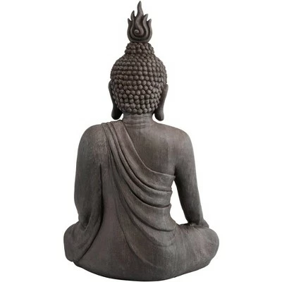 The gray finish accentuates the detailed design of this Sitting Buddha indoor-outdoor statue. This statue exudes charming detail and beauty. This statue can be used inside or outside as a symbol of peace and meditation.