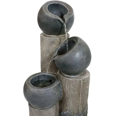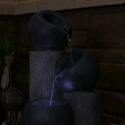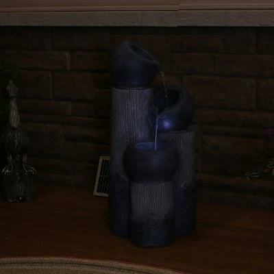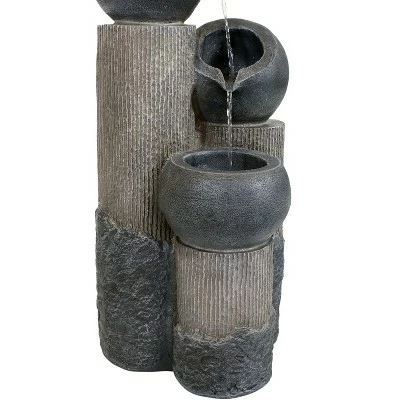 Update any patio or lawn with this decorative and relaxing outdoor water fountain from Sunnydaze Decor. Constructed of durable and easy-to-maintain polyresin, this tiered outdoor water feature is designed with a variety of textures and neutral colors to enhance any outdoor living space. Water gently flows from each of the tiered vessels for a peaceful decorative accent that harnesses the power of the sun via the included solar panel. When the solar panel is in direct sunlight, the pump will be powered by solar energy and the battery pack will recharge. Once fully charged, the battery will power the fountain for up to 4 hours. The battery will also automatically run the fountain when it is cloudy or nighttime. Images include product in nighttime environment.