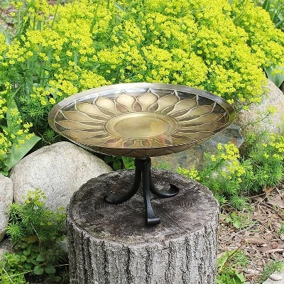 - AFRICAN DAISY BIRDBATH WITH TRIPOD STAND: Generously proportioned bowl features an embossed African Daisy sunburst design, it makes a beautiful garden accent piece placed on a deck, tabletop, pedestal, rock gardens, tabletops, and low border plantings
