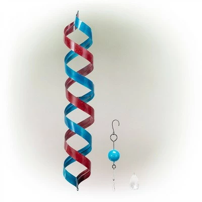 Welcome your guests with the 39″ tall Outdoor Hanging Metal Red and Blue Wind Spinner Yard Decoration from Alpine Corporation. This red and blue colored outdoor yard art is made from colorful curved swirls that add a breathtaking display of spinning movement and motion. Skillfully crafted from weather-resistant and sturdy metal, the all-season decorative spinner can be cleaned easily to keep its reflective shine and vibrant colors. Add one or multiple spinners to enhance your garden’s natural beauty with their electrifying colors and eye-catching movements. Add an attractive outdoor display by lining several spinners along your front walkway or from your patio or porch. This hanging wind spinner decoration measures 5″L x 5″W x 39″H, and includes a one year manufacturer’s warranty from date of purchase. Alpine Corporation is one of America’s leading designers, importers, and distributors of superior quality home and garden dΓ©cor products. Alpine’s award winning in-house design team continuously develops new and innovative “statements pieces” for your home and garden. Your outdoor living spaces will be the envy of the neighborhood with our wide assortment of fresh, fashionable and contemporary products, from beautifully crafted solar garden stakes featuring patented motion and fiber optic lighting technology to gorgeous glass and glow-in-the-dark birdbaths and feeders.
