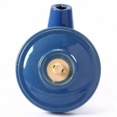Burley clay simple elegance bellflower Blue bird Bath. The bowl has glazed interior. This bird Bath is a locking set, the bowl will turn to secure into the pedestal. Simple Blue color but very elegant.