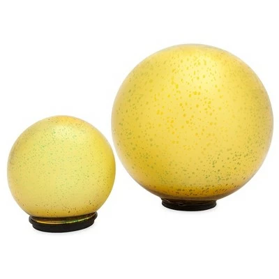 Illuminated from within, these reflective metallic gazing balls offer a glamorous lighting solution. Each is a beautiful decor accent during the daylight hours and becomes an ambient glowing globe in the dark. They are perfect for display indoors or in covered outdoor areas and are battery operated for easy portability.