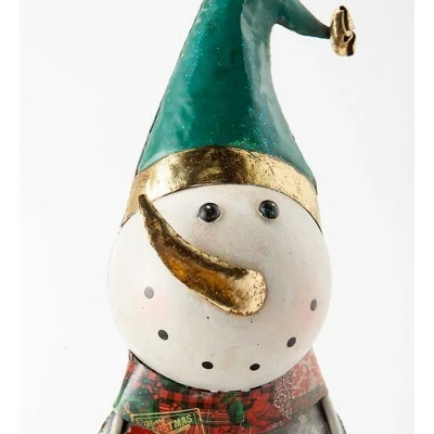 Add old-time flair to this holiday decorating, indoors or out, with this Vintage Style Metal Snowman with Star Christmas Statue. This version of the classic snowman looks like he came from a Christmas past. this snowman wears a scarf, hat, mittens and buttons. His textured facial features look like they were built with found objects. Decoupage detailing adorns his scarf, adding unexpected decorative flair. Best if placed under cover if placed outdoors, such as a patio. His nostalgic look will bring back fond memories and create more family memories to come.