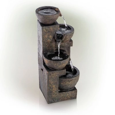 Relax in your indoor or outdoor space with the Alpine Corporation Cascading Stone Bowl Fountain. With this high-quality fountain, you can create a meditative, relaxing atmosphere, even in an urban jungle. This fountain looks great in your garden, patio, deck, porch, or indoor space. Take in the tranquil sounds of the water gently cascading down the 4 pots to create a calming environment. Featuring the natural look of weathered stone, this fountain adds a cosmopolitan touch to any area. The fiberglass construction is weather-proof, rust-resistant, and durable for years of quality use. To use, simply plug in to an outlet, fill lower level with water, and watch as the interior pump creates a lovely water flow reminiscent of a trickling stream. With a 1-year warranty, you can be confident in the quality of your purchase. Fountain measures 11″L x 11″W x 24″H for use in your home or in yards of any size.
