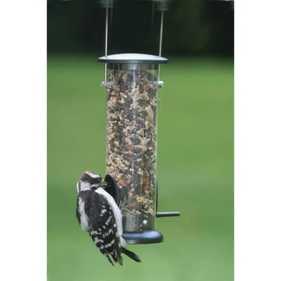 - This tube feeder holds 2 cups of mixed seed or sunflower seed