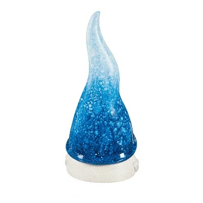 This Ceramic Portly Holiday Garden Statuary depicts a snowman wearing a pointy blue hat and beautiful red scarf.