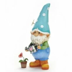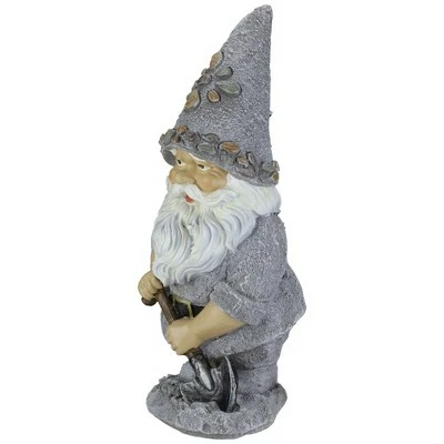 What’s a garden without a friendly gnome statue?! This adorable statue is the perfect accent among your blooming flowers and plants. Featuring a classic gnome holding a shovel and donning a unique hat embellished with faux pebbles. Perfect for porches, patios, or gardens. Check out all of our pebble statues!Product Features:Gray garden gnome statueSturdy water resistant constructionFor indoor or outdoor useDimensions: 13.25″H x 6.25″W x 5″DMaterial(s): resin/stone mix