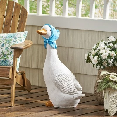 GOOSE DESIGN: This garden statue features an adorable goose design, giving your outdoor space a stunning accent. The goose is wearing a bandana bonnet for a touch of whimsical charm and eye-catching looks.