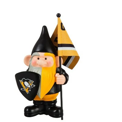This garden gnome is made of polyresin and hand-painted in the Pittsburgh Penguins team colors. It also comes with a real double-sided polyester suede flag on a pole in his hand. Can be used outdoors or indoors as a decorative accent.