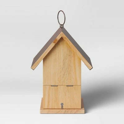 Add timeless beauty to your outdoor space with this Wood and Iron Bird House from Smith & Hawkenβ’. Crafted from rust-resistant iron material that can withstand the outdoor elements, this bird house is designed to be a focal point for any flower garden, yard or nature sanctuary. The house features a hole at the front for cute detail along with a door knocker detail metal ring included for easy hanging. Create your own backyard bird habitat with this wooden bird house.