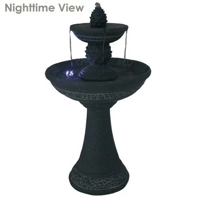 Add an elegant tiered fountain to any garden or outdoor landscape with this 2-tier fountain from Sunnydaze Decor. This garden fountain can operate on solar and battery power when set to the on position. Plus, no plumbing is required; once the feature is assembled, simply connect the cord from the pump to the solar panel and place the panel in direct sunlight. No more unsightly extension cords running across the yard and hogging those plugins; just mount and conceal the panel in a sunny place and enjoy! The solar with battery backup option allows this fountain to harness energy even when there is no sunlight. The rechargeable battery pack charges throughout the day (with or without the fountain running) so the gentle water sounds can be enjoyed in the evening as well. Images include product in nighttime environment.