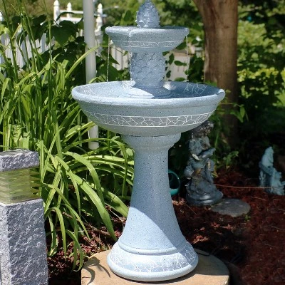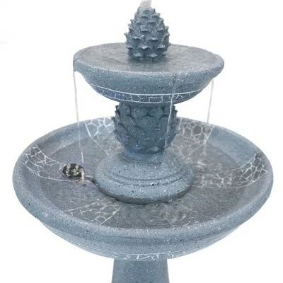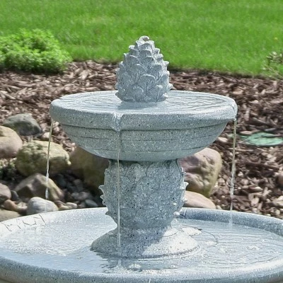 - Outdoor 2-tiered pineapple topped solar with battery backup birdbath water feature