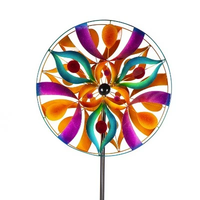 Transform your garden or yard with the mesmerizing movements of this Mardi Gras Wind Spinner. Featuring uniquely shaped and vibrant panels that come to life with every passing breeze, this wind spinner harnesses the power of nature with stunning beauty. Watch as the layered panels spin in opposite directions for an entrancing display in your outdoor space. This striking kinetic is made of powder-coated metal with a weather- and rust-resistant finish to prevent fading. After some light assembly, installing the wind spinner is easiest in moist soil or grass. Push the bottom prongs into the soil until they are completely covered – no tools are necessary.