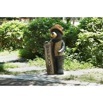 - STANDING BEAR WITH A WELCOME SIGN: Decorate your home or garden with this adorable bear wearing a fishing vest and a hat and holding a ‘welcome’ sign, and wish a warm welcome to all your guests