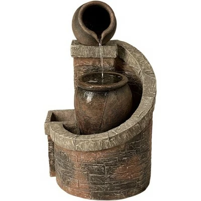 This lovely accent fountain looks great in a garden or patio area. Water flows from the top urn into the lower jug, creating a Zen soothing sound that can help mask unwanted outdoor noises. From the John Timberland brand, the design has a built-in LED light for nighttime use, and has a small planter box so you can display your favorite flowers. Can also be used in an indoor space.