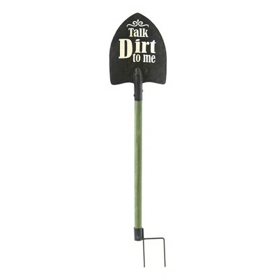 Add a humorous touch to your home’s landscaping elements with this garden stake in the shape of a shovel and featuring a humorous message. The novelty message will bring a chuckle to all who see it and each one is a pun about owning your own garden. The sentiment pun message is painted on the front of the shovel scoop in white paint that is easy to distinguish. Place it in the pathways leading to your home or among the shrubbery and plants outside in the backyard. Iron and wood. 6-3/4″W x 31-1/2″L, including the 4-1/4″ ground stake.