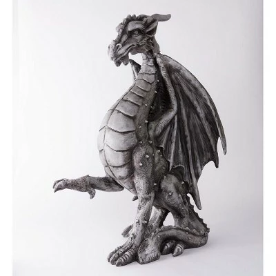 Our Large Indoor/Outdoor Medieval Dragon Statue is one colossal fire-breather. At more than three feet tall, this dramatic dragon statue will be a statement piece in your garden or…if you dare…the living room! Cast in weather-resistant resin from a remarkably detailed original sculpture, each dragon is treated with a stone-like finish, giving it the appearance of a hand-carved statue. From his fearsome visage to his mighty wings, this dragon is truly a sight to behold. Wind & Weather Exclusive Design.