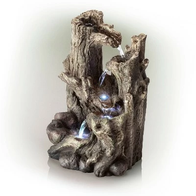 Relax and enjoy the sounds of nature with the Alpine Corporation 5-Tier Tree Trunk Fountain! With this high-quality fountain, you can create a meditative, relaxing atmosphere in your home or office. The waterfall looks great in any indoor dΓ©cor. Take in the tranquil sounds of the water gently cascading over natural-looking brown wood. The resin, stone powder, and fiberglass construction is weatherproof, rust-resistant, and durable for years of quality use. To use, simply plug into an outdoor outlet, fill lower level with water, and watch as the interior pump creates a lovely water flow reminiscent of a lush rainforest. 6 LED lights in each of the 5 tiers illuminate your space, drawing attention to the relaxing water pools day or night for added ambiance. With a 1-year warranty, you can be confident in the quality of your purchase. Fountain measures 9″L x 7″W x 14″H for use in yards of any size.