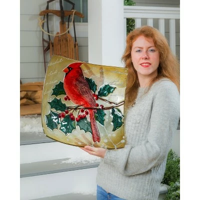 - This striking design captures a striking cardinal perched on a holly branch. This masterful piece is perfect for beckoning feathered friends from near and far.