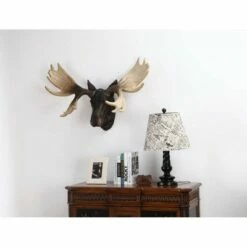 Moose Head Bust Ready to grace your home, cabin, or hunting lodge wall. Designed with beautiful true-to-life detail. Made from durable polyresin. Ideal for indoor and outdoor use. Decorate your home, cabin, or hunting lodge wall with this black moose decor statue and add a lively atmosphere to any space. Great Gift Idea for any type of space!