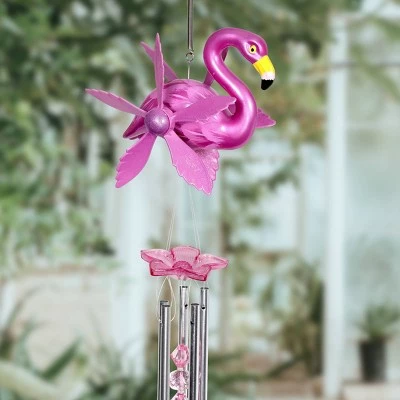 - Beautifully hand painted spinning Flamingo Wind Chime