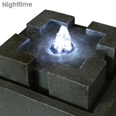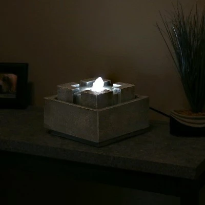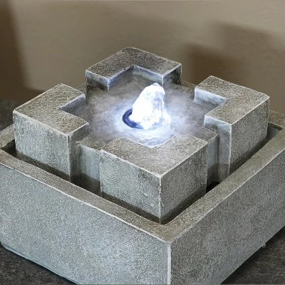 Bring some tranquility to your home with this indoor tabletop water fountain from Sunnydaze Decor. Featuring an elegant, minimalist aesthetic, this indoor water feature is sure to be an eye-catching decorative accent. It is durably constructed of strong and easy-to-maintain polyresin material. This attractive tabletop fountain is also easy to set up too with no complicated plumbing necessary. Simply add the included pump to the fountain, fill the fountain with water, plug in the pump and the fountain will be running in no time. Images include product in nighttime environment.