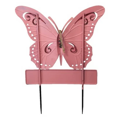 Fun Decorative Yard Stake Of A Beautiful Butterfly In Colors Of Purples And Pinks Sitting On Top Of A Blue Sign With “Welcome” Stenciled In White.. New. Measurements 24.0 In H X 17.75 In W X 2.0 In D. . Made Of Metal. No Assembly Required. Outdoor Use Only. Imported
