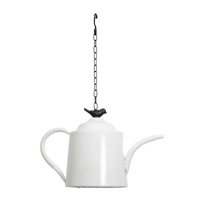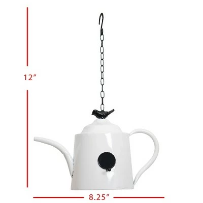 Give your favorite garden birds the stylish home they deserve with a beautiful birdhouse from Foreside Home & Garden. A modern farmhouse accent designed in the style of a vintage watering can with a handle and spout, finished with a chain for hanging. This metal birdhouse features a clean white enamel with sleek black accents, including a small metal bird perched at the very top. The neutral colors of this birdhouse pair well with elements of nature outdoors and the vibrant colors found in a garden.