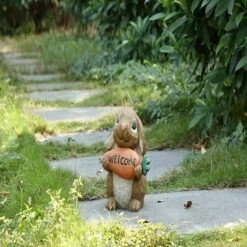 - CUTE RABBIT HOLDING A CARROT WELCOME SIGN: Decorate your home or garden with this adorable rabbit statue holding a carrot ‘Welcome’ sign, and wish a warm welcome to all your guests