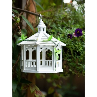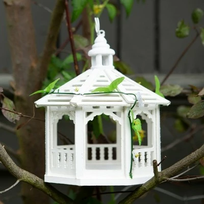 - Gazebo birdfeeder is tastefully trimmed with gingerbread moldings and greenery. A lovely spot for birds to dine!