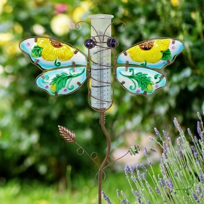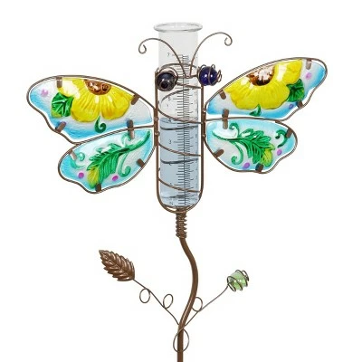 Beauty meets function with this blue butterfly rain gauge garden stake. The rain gauge is beautifully hand painted with great details and crafted of durable glass and metal. Standing at 36 inches, this butterfly stake makes a colorful, fun, and practical addition to any home.