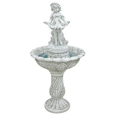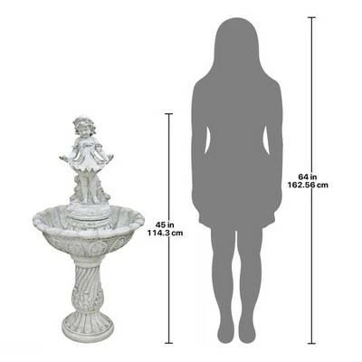 Bedecked in her dress-up finery, our Victorian miss, Abigail, catches the bright beads of sparkling water in her opened apron accompanied by the lyrical sound of water music cascading into the bowl below. With her chubby cheeks and gleeful expression, the cherubic little girl in this charming statement piece creates soothing sounds of cascading water music from her bountiful apron. At nearly four feet tall, our Design Toscano splendid fountain rests upon an Italian-style basin ringed with acanthus leaves sitting atop a classic pedestal. Cast in quality designer resin and hand-finished to replicate fine antique stone, this true investment in garden art features an integrated, UL-listed, indoor/outdoor pump. Another quality garden fountain from Toscano! 23″dia.x45″H. 45 lbs.