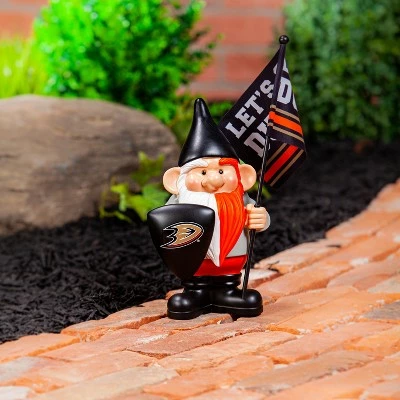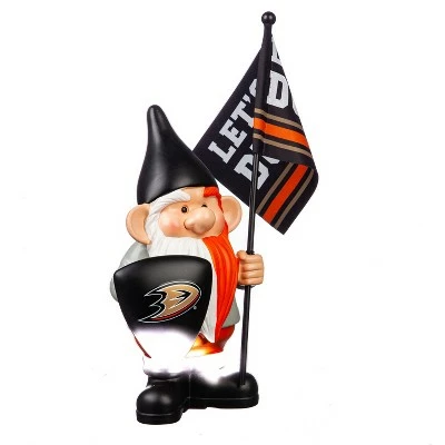 This garden gnome is made of polyresin and hand-painted in the Anaheim Ducks team colors. It also comes with a real double-sided polyester suede flag on a pole in his hand. Can be used outdoors or indoors as a decorative accent. At Evergreen, we are committed to producing premium, quality products to bring a touch of color and personality to your home. We respect and celebrate the uniqueness in everyone by offering one of the world’s largest selections of home and garden decor.